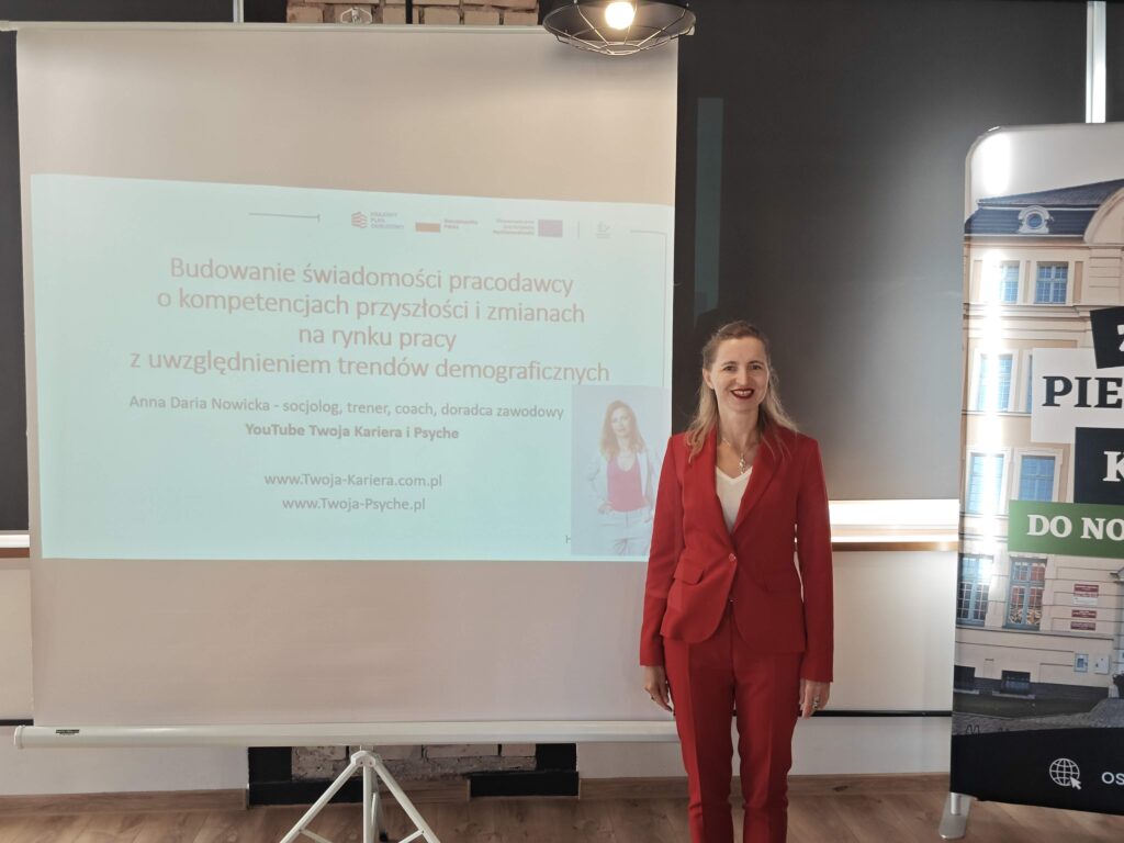 Moje wystąpienie w Ostródzie dotyczyło „Budowania świadomości pracodawcy o kompetencjach przyszłości i zmianach na rynku pracy z uwzględnieniem trendów demograficznych”. Poruszyłam m.in. następujące palące kwestie
