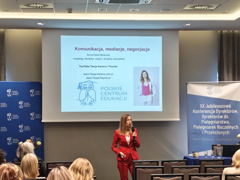 Komunikacja z personelem, mediacje, negocjacje – o tym właśnie mówiłam podczas Konferencji Dyrektorów, Pielęgniarek Naczelnych i Przełożonych, którą w Gdańsku zorganizowała Anna Dąbrowska z Polskiego Centrum Edukacji. Na praktycznych przykładach poruszyłam m.in.