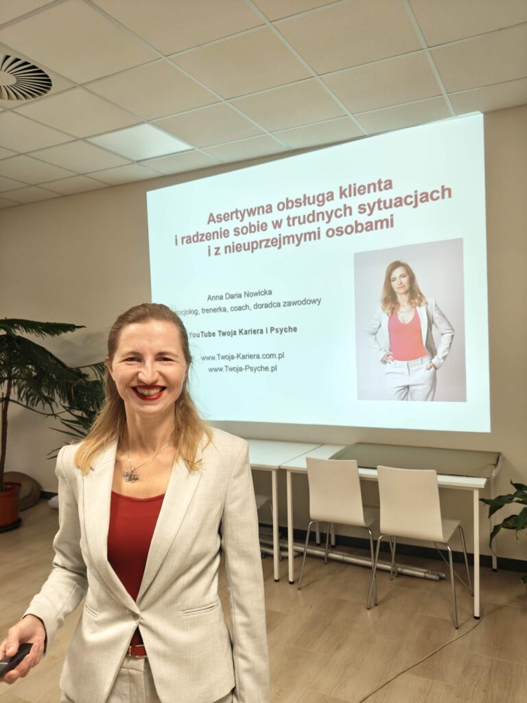 „Asertywna obsługa klienta i radzenie sobie w trudnych sytuacjach” to tytuł szkolenia, jakie prowadziłam przez dwa dni. Praca z klientem staje się coraz trudniejsza, gdyż coraz więcej osób niestety odreagowuje swoje frustracje na obsługujących ich pracownikach! Także w zespołach osoby nieumiejące postawić granic i zbyt ugodowe, bywają wykorzystywane przez szefów i współpracownikach. Podobnie zdarza się w relacjach rodzinnych i koleżeńskich..