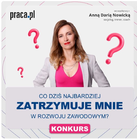 Weź udział w KONKURSIE „Co dziś najbardziej zatrzymuje mnie w rozwoju zawodowym?”. Wygraj moją sesję coachingu kariery! Pomogę Ci lepiej poruszać się po rynku pracy i osiągnąć zamierzone cele!